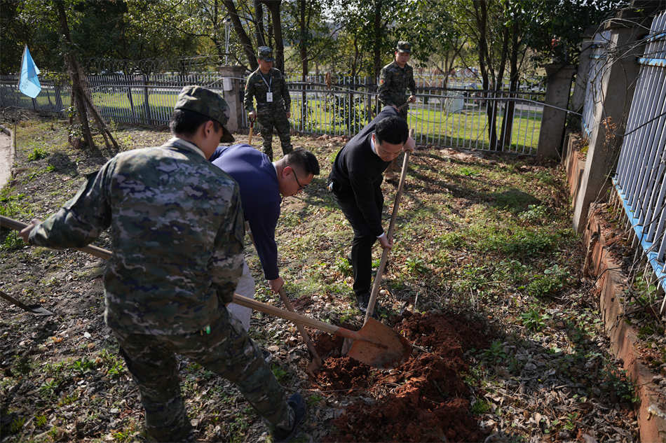 在植樹現(xiàn)場(chǎng),處處是忙碌的身影,同志們?nèi)迦艘唤M分工協(xié)作,挖坑鏟土,扶植樹苗,培土栽樹,各個(gè)環(huán)節(jié)銜接有序,配合默契,整個(gè)植樹現(xiàn)場(chǎng)呈現(xiàn)一片熱火朝天的勞動(dòng)景象,洋溢著團(tuán)結(jié)協(xié)作、昂揚(yáng)向上的融洽氛圍。經(jīng)過近兩個(gè)小時(shí)的奮戰(zhàn),看到一棵棵綠油油的小樹苗,為初春的理工校園增添了一絲綠意,同志們顧不上一臉的汗水,臉上露出了欣慰的笑容。
